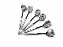 Набор дротиков для дартса DAR3324, состоящий из 6-ти дротиков с чёрно-белым узорчатым флайтом и металлическим держателем. Каждый дротик имеет вес 24,5 грамм, что делает их подходящими для использования опытными или профессиональными игроками. Толщина хвата (баррель) составляет 9 мм.