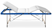 Каркас кушетки выполнен из трубчатого алюминия с системой тросов, что позволяет столу выдерживать большие нагрузки до 200 кг. Ложе имеет ширину 600 мм. и выполнено из влагостойкой фанеры, покрытой 16 см слоем эластичного полиуретана. Полиуретан обшит специальным винил-люксом, который не прихотлив в обслуживании, легко чистится и дезинфицируется. Благодаря своей простой конструкции и возможности складываться в небольшой чемодан, кушетка не будет занимать большого пространства в вашем помещении.