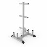 Подставка под гантели выдерживает нагрузку до 200 кг, держатели для дисков – до 100 кг. На стойке 7 посадочных мест для дисков. Помимо дисков и гантелей, на стойке возможно разместить 4 грифа без дисков длиной от 120 см.